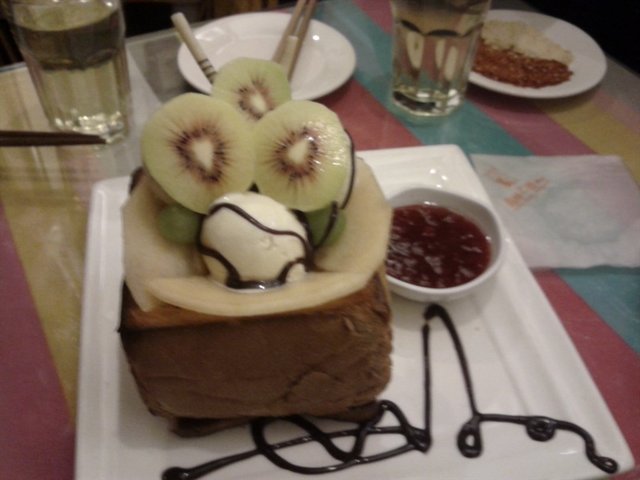 蜜糖吐司,味道不错就是里面的面包没烤有些失望。。