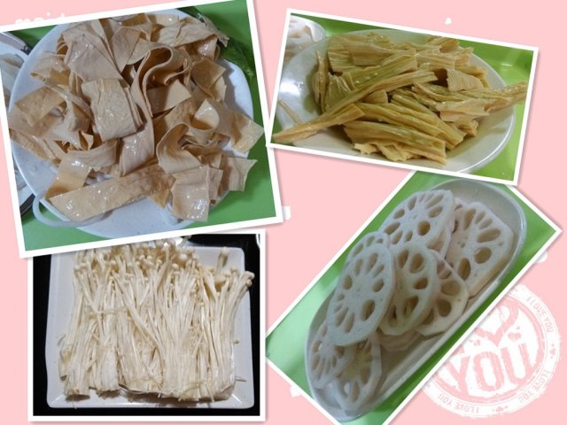 这里面有腐竹、豆腐片、藕片和金针菇,大家都比较喜欢吃金针菇,不过分量有些少,藕片吃着很脆,煮了味道还不错,腐竹和豆腐皮就很一般了,时间长了容易烂。