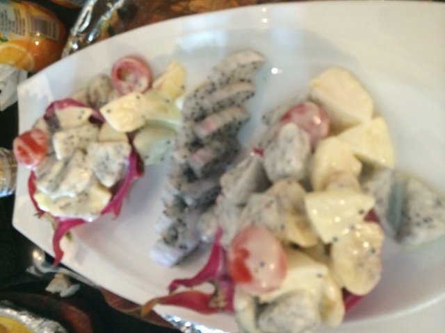 水果沙拉 帅哥老板赠送的 好吃的香蕉 苹果 火龙果