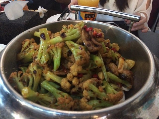 干锅菜花 有点辣 不过真的超级入味啊 比较素一些 还是很好吃的