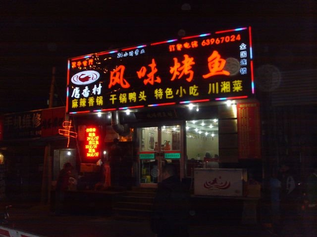 唐香村风味烤鱼:地址是海淀区北蜂窝中路65号(北蜂窝医院对面)。下班后选了一个离家较近的烤鱼店和朋友小聚一下;进店看见句号的大幅照片广告,看来是来对了地方了!麻辣馋嘴蛙,是我们几个的大爱,蛙肉鲜嫩,很是新鲜,麻辣味也十足,配菜也很丰富,新鲜,不错的一道好菜!很值得推荐!蓝莓山药,百分百的山药泥,口感滑糯,不同于以往吃过的蓝莓山药!听说他家的烤鱼,鱼都是让客人亲自看着宰杀,让吃客放心,下次去一定要首选烤鱼体验;黄瓜皮蛋汤,味道也很好,酸辣蕨根粉也很和我的口味,最后老板还赠送我们两个菜,老板很实在,我们吃的都很多,花费一般,很经济实惠的一顿大餐