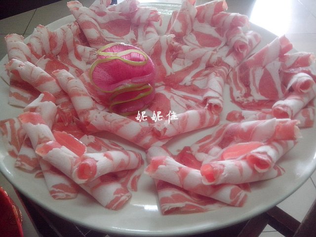 精品羊肉36米,那盘子老大了,真是不愧大盘涮肉的名字。说是9两一盘,肉片片的较薄,量还可以,5人要了5大盘,吃到最后好撑~