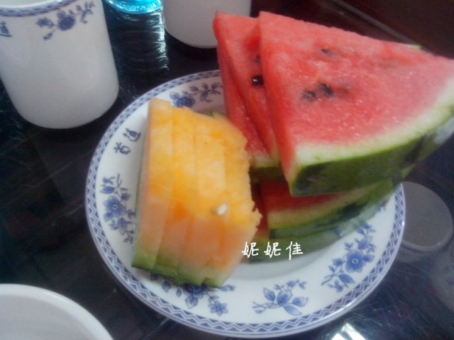 自助区还有免费的水果自己取,西瓜和哈密瓜两种,品种应该是分季节供应,哈密瓜很甜,供应补货很及时充分,吃了很多盘。