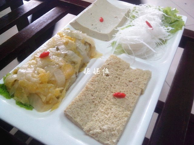 豆腐四拼16米,就是冻豆腐、鲜豆腐,酸菜,粉丝4样拼盘。