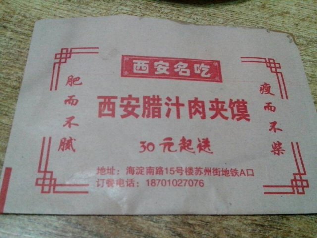 在北京我最爱的肉夹馍之一 luoqiuqiu等级42013-10-3117 浏览 关注 这家店在苏州街地铁站A口出来。 因为有时候坐地铁没有吃饭,就会在这里解决晚餐。 算是我比较喜欢的一家店了。 因为他们家肉夹馍特别好吃。每次我买普通的,朋友买纯瘦的。 为什么好吃呢,一来肉夹馍的饼烤的正合适,干干脆脆,但是又不是那么硬。二来,用的肉,特别香。 我还是喜欢肥瘦都有的,但是瘦的,就会觉得没有油味。还吃过这家的砂锅和阳春面。他们家阳春面很有我妈妈做的味道。因为比较喜欢葱味。阳春面凉皮是用麻酱拌的,比较中规中矩。 以上食记乃用户个人意见 , 并不代表OpenRice之观点。赞好分享在北京我最爱的肉夹馍之一 老杜家西安腊汁肉夹馍 https://s.openrice.com/KtLT1m0w1W800检举 张贴 评分5味道3环境4服务3卫生5抵食推介美食阳春面