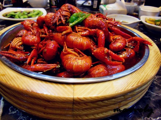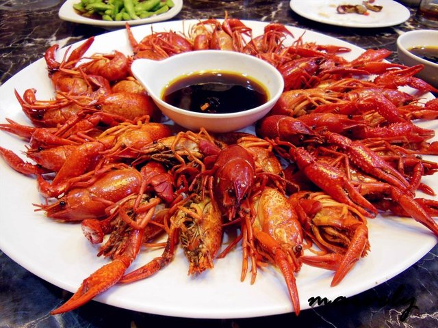十三香盱眙龙虾,热腾腾的十三香小龙虾刚刚端出来,就被我们一人一只两只的抢光了。鲜嫩的小龙虾伴着热气散发出浓烈的香料味道,我们迫不及待的拨开虾壳,香料的味道已经渗入到虾肉里面,不用蘸酱就很美味了,蘸了酱料之后更加香浓。