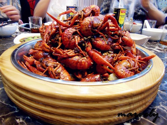 这家店,电梯直通3楼,左右两边都是,一出电梯,就听到喧闹的声响,正是饭点的时候,配合着这火辣的小龙虾,气氛自然热烈。再配上店里深色系的桌椅,不由得感觉到热情了。