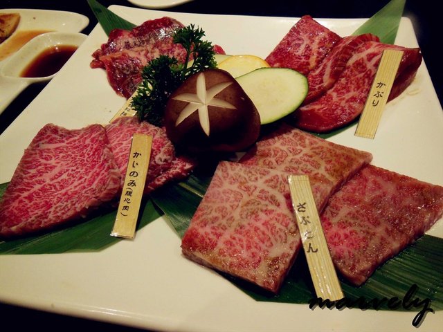 不知道哪种肉比较好吃好吃的时候,可以像我们一样点一份特上牛肉四点拼盘。