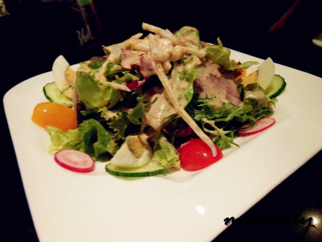 色拉配的也是牛肉色拉,上面浇的是花生酱,味道香浓。