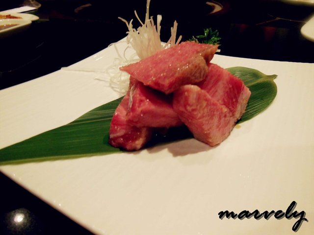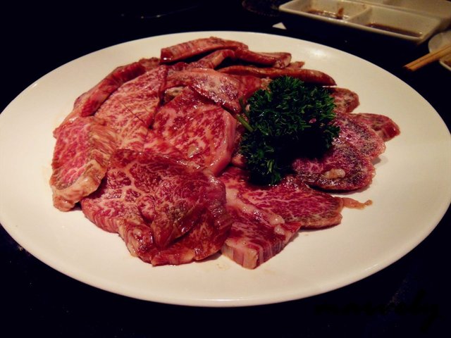 为了更多的品尝到響家的肉,我们又点了一份赤身肉。这同样是一盘选用牛肉身上不同部位的肉组合而成。不懂日文的我们无法破译这些肉都来自于牛身上的哪些部位,而且它们也被混装在一起,于是,我们继续在吃到不同口感的牛肉中寻找乐趣。