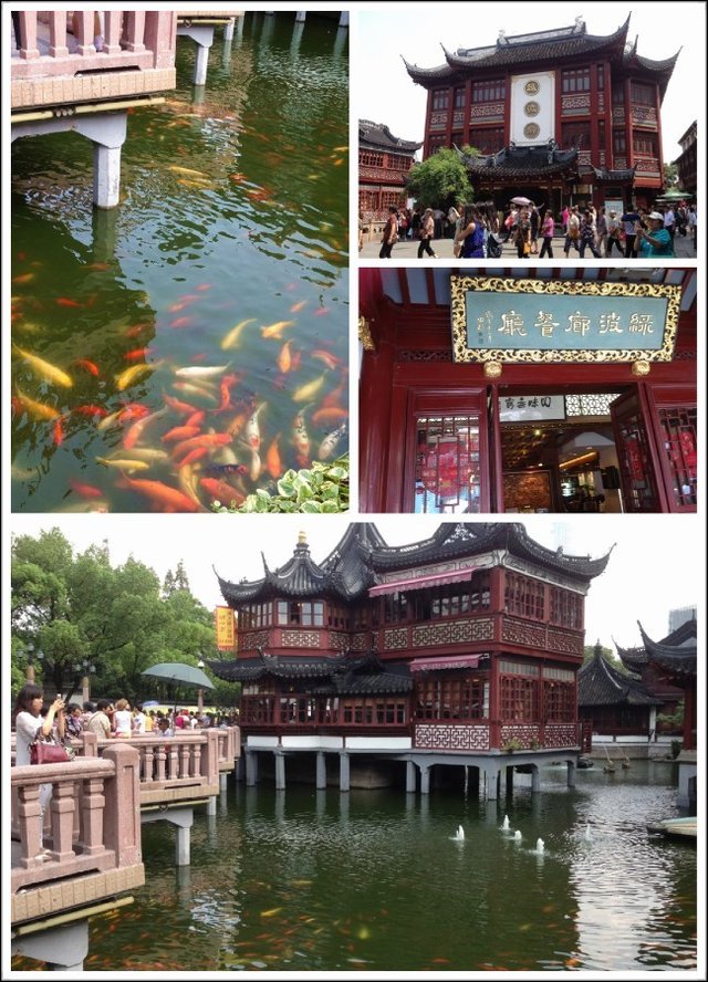 绿波廊就在城隍庙的九曲桥边,一栋小楼很漂亮的,古色古香,老远就能看到它家的大招牌