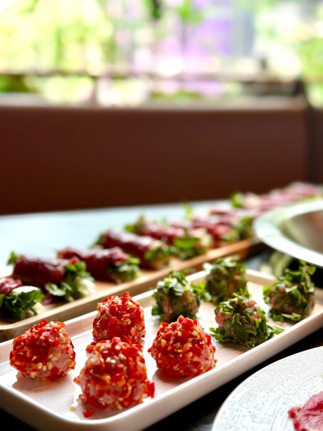 視覺衝擊!牛肉卷住超多香菜,香菜控會瘋狂~建議放番茄鍋,清新唔膩!