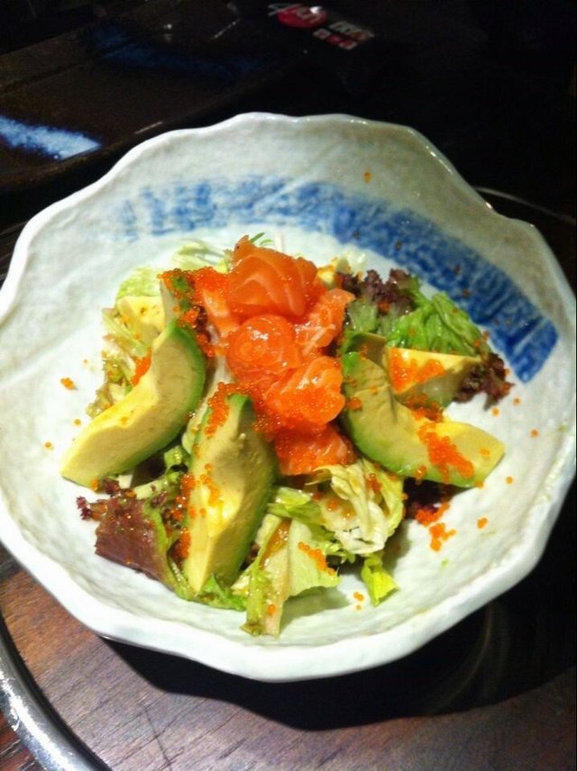 【牛油果色拉】一整只牛油果摆盘上面还点缀三文鱼及鱼子酱搭配生菜结合一起,营养丰富口感清脆爽口,酸鲜咸融合在一起,非常的又层次感,牛油果香糯肉质非常细腻的口感,