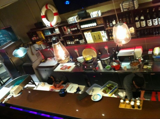 伙房水产餐厅是一家主营海鲜,烧肉,酒场等的店铺,店铺位于虹井路路口,一走进去海鲜的味道扑面而来,一种海洋的鲜美味久久不能挥去,店铺的环境有点小酒吧很随意的感觉,装修风格有点海洋风味海盗的感觉,服务员制服也是水手装,很清新亲切的招待我们,非常的热情主动斟茶倒水,上菜等服务非常的人性化,老板还很有心的在桌上放置了牙线,小小的举动给人大大的温馨,健康卫生环保,还是很不错的哟!他们家的菜色海鲜都是最新鲜最鲜活的海鲜,价格都是相当的实惠和划算的哟,帝王蟹很大一只,只要268元一斤,老板是个很朴实为食客着想的人,非常的大方,赞一个!餐前小菜:泡菜,辣白菜,酸菜都是开胃爽口的哟,咸淡适中,给人很清爽的口感制作的也是非常的美味哟。