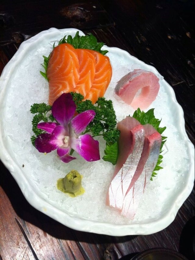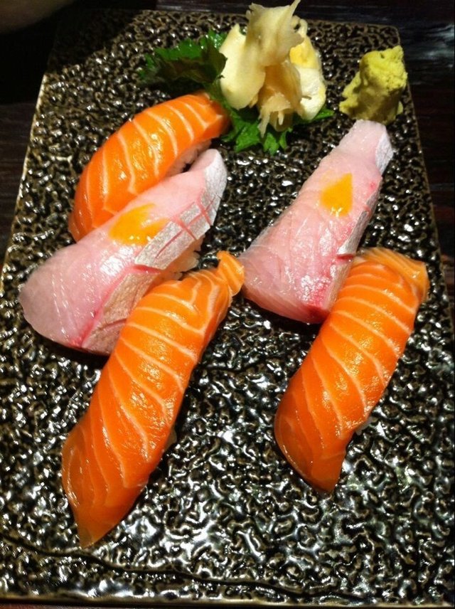 【三文鱼狮鱼刺身】三文鱼非常的厚实又很大片,给人一次吃的爽满足的感觉,入口肥厚,清甜鲜美,咀嚼清爽的味道肉质软硬适中,非常的好吃哟!狮鱼肉质紧实味鲜有嚼劲!