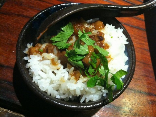 【古早卤肉饭】卤肉饭酱汁鲜甜,卤肉烧制酥烂与米饭融合一体,入口油而不腻的感觉,香鲜美味,米饭也很糯而软绵哟!