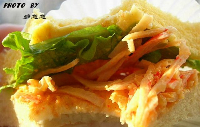 多悠悠@巴黎贝甜 Paris Baguette【辛耕路永新坊店】 多悠悠等级42011-11-202 浏览 关注 多悠悠@巴黎贝甜 Paris Baguette【辛耕路永新坊店】:徐汇区辛耕路125号(永新坊) 本来想吃大热的吞拿鱼三明治,结果没有了,呜呜~ 退而求其次,要了蟹肉三明治。看起来不错,fresh的很!蟹肉蛮多的,面包也很松软,碧绿的生菜叶,清淡的沙拉酱,很好吃。一份两个,本来想留一半的,结果没摒牢,统统吃掉!O(∩_∩)O哈哈~脸红的来~以上食记乃用户个人意见 , 并不代表OpenRice之观点。赞好分享多悠悠@巴黎贝甜 Paris Baguette【辛耕路永新坊店】 巴黎贝甜 https://s.openrice.com/KtLT100Z7O100检举 张贴 评分5味道5环境5服务5卫生3抵食