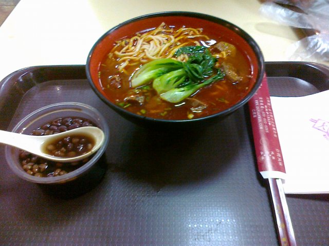 晚饭,我们两个人独立点了2个饭,都不是套餐的,分别是西红柿牛腩面和鸡腿饭,最近的活动是我的西红柿牛腩面还送一份蜜汁鲜豆饮品。西红柿牛腩面的价格是21元,鸡腿饭的价格是22元,蜜汁鲜豆是免费。