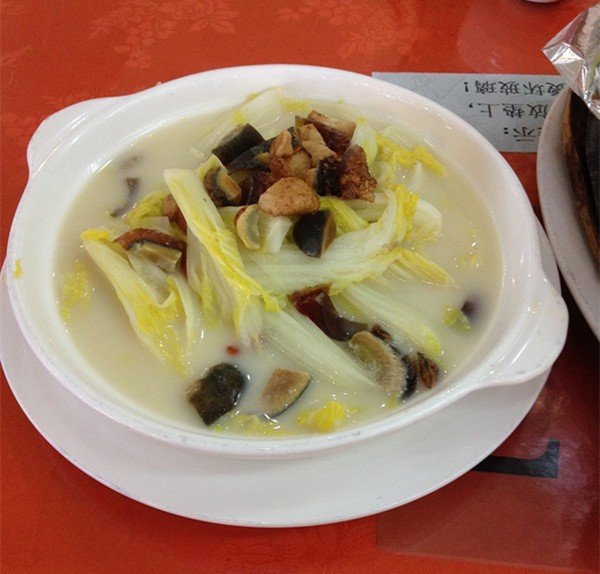 对比一下旁边的娃娃菜和对面的人,这么大的鱼头我真是看呆了!还有那一圈儿泡饼,感觉完全吃不掉。可是鱼头的调味实在是太咸了!是厨师没有把持住自己放盐的手么…拜咸味所赐,我把周围那圈儿饼都吃光了。撇开味道不说,鱼肉很嫩,饼烙的特别酥脆,唯独调味是败笔。