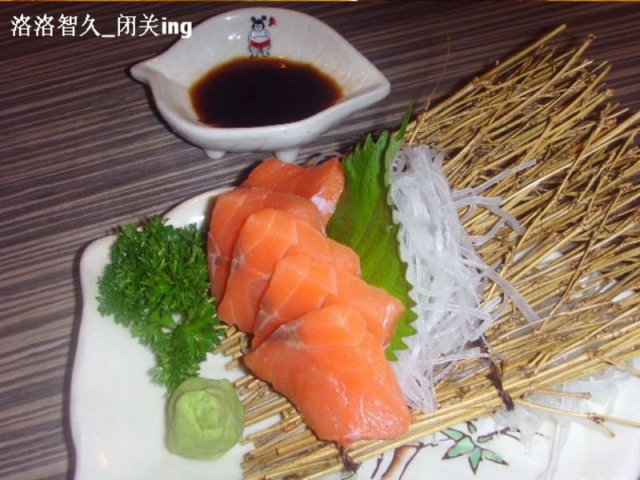 三文鱼刺身,共有5片,每片都蛮肥美,毕竟只要15RMB,表抱太高的期望,不过这种价格,也差不多这种品质~~价格与品质是划上等号的~如果满分是10分的话,这个三文鱼刺身能打7分吧~