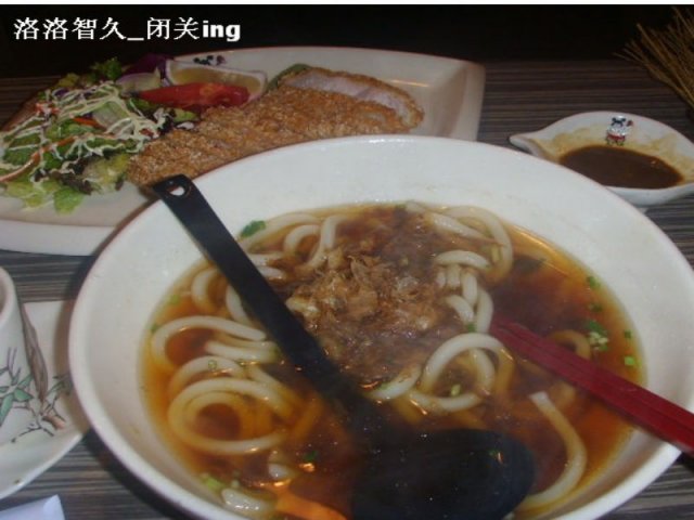 乌冬面~~呃~~MS我真的点的蛮多的~我看边上的每个MM都只点一份面食~只有我还点刺身~罪过~~残念~~well~I don't care~只要自己的味蕾开心就行了~~乌冬面的品质也蛮不错的,浸在汤汁里N久,仍然还是蛮Q的~乌冬面刚端上来的时候,上面的木鱼花迎风飘扬着,煞是卡哇依~