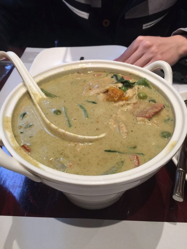新天地看完电影就去吃天泰啦,看到美团上有团购果断买买买。天泰价位还是蛮高的,在泰国菜里面,之前在环球港吃过一顿,感觉不错,这次就来新天地啦,不过这家还要收服务费的。去的时候5点多,还没有人等位,但是沙发的位置已经没啦,还是很火爆的。说实话味道的话真还行,因为和朋友一起所以吃饭体验还好,但是味道不算特别,口味蛮正的但有些食材不及以前吃过的泰餐。菠萝饭味道还是不错的,量也还可以。。。咖喱就还不错,冬阴功无功过,但青木瓜沙拉的料真的太一般口感较差。服务人员态度一般,找个人点菜找了很久,而且茶水都没有主动倒!