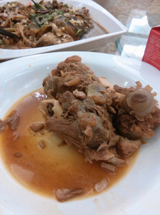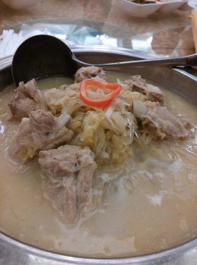 肉类有,半皮鸭,一份大概是130多吧,肉比较少,十几块吧,下面都是炸的那种虾片,不香,有点干;酸菜粉条排骨,这个算是里面比较出彩的,真正有东北菜的感觉,汤很好喝,粉条也很不错,土豆芸豆炖排骨,菜单上是这道菜但是没看到排骨,土豆和芸豆炖得很软烂;酱大骨,这个一份里面大概有7、8个吧,很烂糊,味道还可以吧,但是没有大味骨头馆的好吃,也没有人家的实惠,骨髓还是挺多的,虽然没吸出什么味道来,但是吸着挺带劲~~