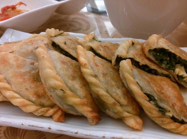 主食,酸菜水饺,个头挺大,一口下去酸菜的味道很正啊,韭菜盒子,6元一个,没吃,不予评价