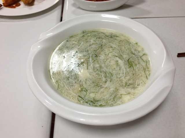 【海鲜羹】这道海鲜羹上来是相当的清新。上面是海带丝混合着蛋花丝。下面还有一些虾仁和蟹肉棒之类的海鲜。很鲜美。这个味道是海鲜羹特有的香味和鲜味。特别喜欢。而且吃到这里更好觉得有点口渴。正好来碗羹垫垫胃,很适合。