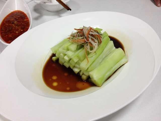 【上汤时蔬】已经是切除了下面的叶子部分。完全只剩下杆子啦。一块块迭起。非常精致呢。就是有点清淡。稍微浸润一下旁边的酱油汁水,味道才刚刚好。吃了大鱼大肉,来一点蔬菜解腻挺不错。荤素搭配。更加合理。