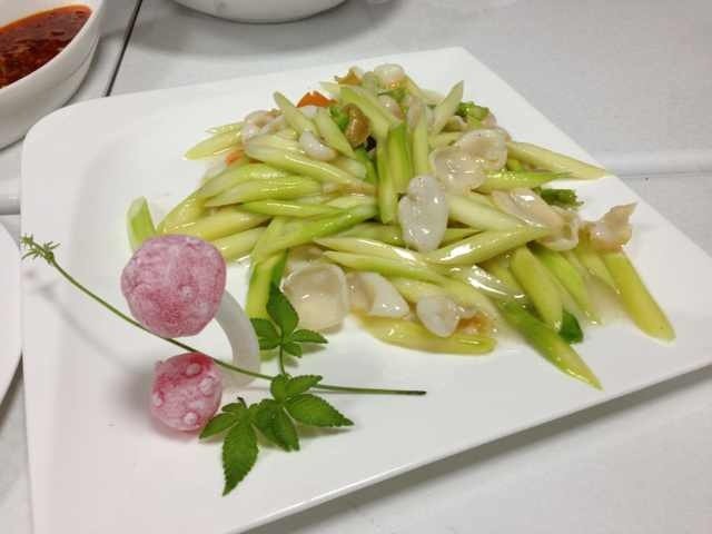 【西芹百合】我不喜欢吃芹菜。这个芹菜的切面是斜的,很好看。而且厨师的本意是想做菜的时候更加入味吧。百合甜甜的。我很喜欢。我就只吃百合。芹菜,怎么说呢。总感觉有股芹菜特殊的味道。我不是很喜欢。