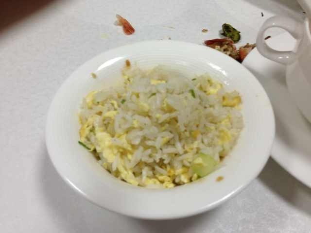 【炒饭】最后的点心。总算满足我的心愿。 配上刚刚的小炒肉很不错。量大。只是炒饭是作为压轴点心上来的,稍微尝试了下味道。实在是吃不下。扬州炒饭做得还不错。鲜美。就算是淡口吃,也不会觉得无味。