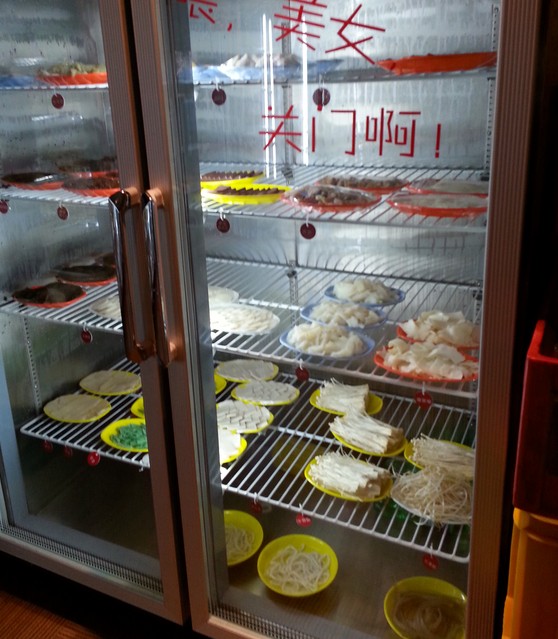 跟朋友2人去的,位置很好找,出来团结湖地铁就是了,环境不错,进去上2楼,门口好多小娃娃的造型,很漂亮,上楼后感觉店面很干净,有几个冷柜,菜品也很多,菜和肉分开放的,还有各种丸子,要的鸳鸯锅底,30米,其他的串串分长中短签,分别不同收费,5角,一元,一元五角,还有鸭血,毛肚,什么的都是按盘子颜色收费,锅底辣的实在,清汤的不错,乳白色的,感觉鸭血不是太好,像是化学合成的那种,菜都不错,洗的也很干净,小肠没法吃,里边的污垢都没清洗出来,且咬不动,白薯很小的块,煮一会就化了,丸子种类还行,比较喜欢,还带不错,厚厚的大片,总体感觉不错,饮料业很多,啤酒,酸梅汤,北冰洋,都有,2人正好100元,吃的很饱