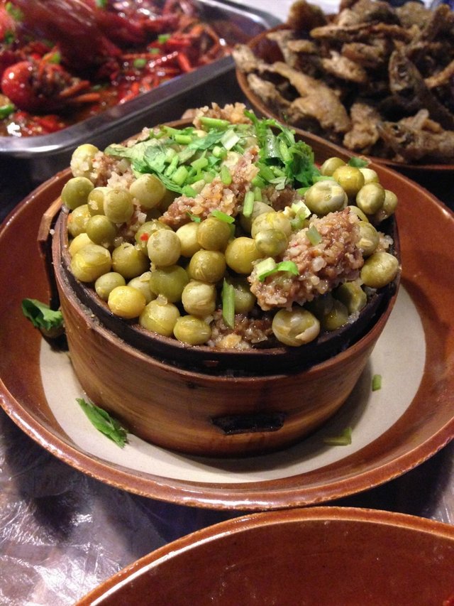 店里面还有什么粉蒸牛肉啊,毛豆啊之类的。