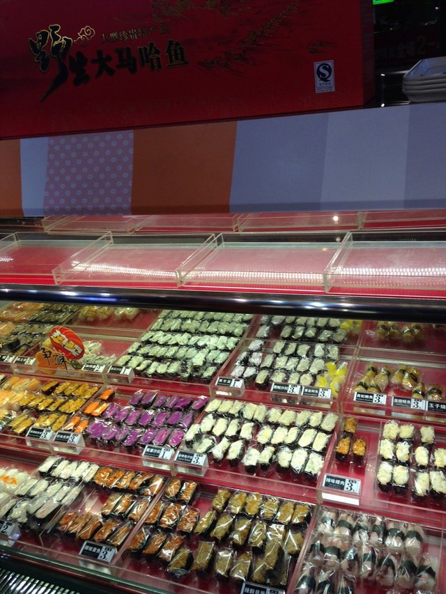 这家争鲜寿司就在西单汉光百货的8层,有好多好多的寿司,而且买完寿司还可以在这层的美食广场就餐,附近就有好多的位子。因为他家主要是以外带为主,所以来这儿的人都一下子买了不少的寿司,我喜欢吃他家的鳗鱼寿司、辣味螺肉寿司还有金枪鱼沙拉寿司,都是3元一个,价格也不贵,尤其是金枪鱼沙拉的里面金枪鱼还真不少,吃起来特别的新鲜,米饭也很柔软应该是糯米吧,挺多人买的,因为卖的量大所以看着就过瘾。