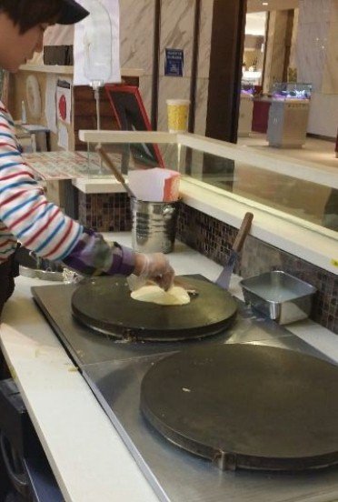 跟煎饼果子的做法出奇的一致,要不是奶油换了辣酱和甜面酱,