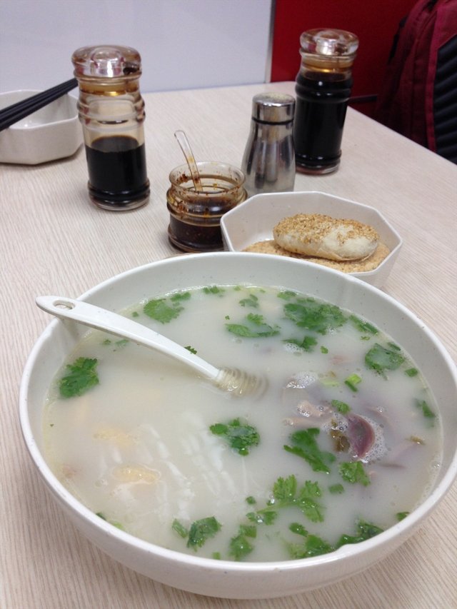 南京大街小巷都是卖鸭血粉丝汤的,鸭得堡算是比较成规模的老字号了。