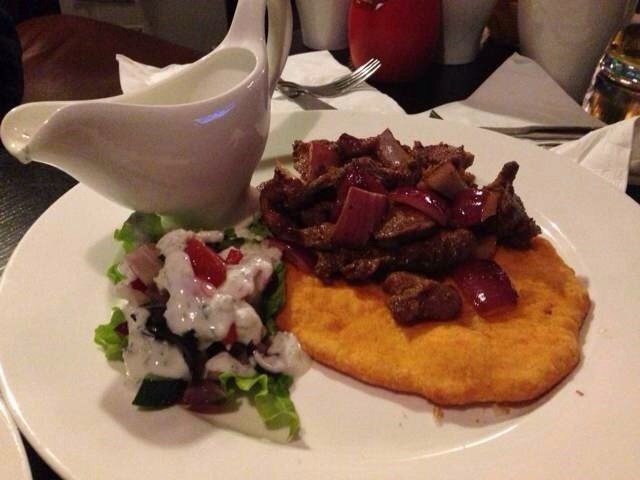 匈牙利炖牛肉配面球 这个菜卖相灰常好,小面球~我觉得比较像陕西面里的面疙瘩~口感不错,混合着肉汁和胡萝卜,肉肉,绝对是种享受~