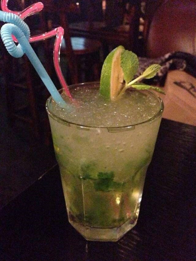 莫吉托 只要是有我就必须尝试的一款鸡尾酒~一定要说做的很好喝,我不是懂酒的人,全凭口感,这是我喜欢的味道~酒的味道适中,薄荷叶灰常多,清凉可口~听老板说店里还有一种其他做法的,下次一定要尝试~