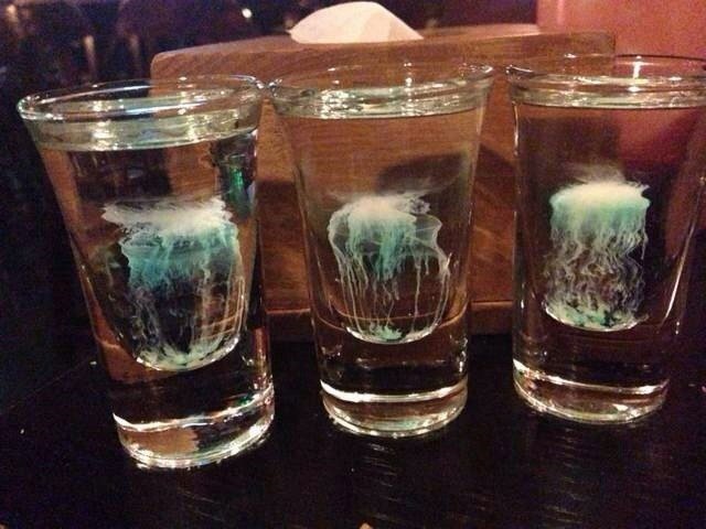 水母 一直期待的一口酒啊~点之前就被告知酒精度数比较高~好漂亮的,调酒师的技术绝不是吹滴~一定要一口进肚哦~刚开始有点辣(据说就是喝白酒的感觉,平时不喝白酒的默默溜走...)回味很不错哦,甜甜的,偶尔尝试是可以滴~