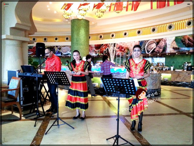 Ps:总体来说就餐环境不错,在武汉很多自助价格昂贵,但是环境很嘈杂,有些菜品排队,抢,让人感觉很不爽。但是在金盾吃的很优雅,这点比较舒服。虽然作为吃货很多人吃自助餐的口号是“扶着墙进,扶着墙出!!!", 但是我觉得还是要讲究一个吃的方式和环境,心情才会愉悦,吃的才会舒服。昨晚两位外籍美女的歌唱的相当不错,给整个餐厅增加不少异域风情的氛围。菜品的食材都比较新鲜,菜品的特色还有待进一步加强,光从视觉上去享受这些食物是非常赏心悦目的,口感上特色不太鲜明,希望后期越来越丰富。