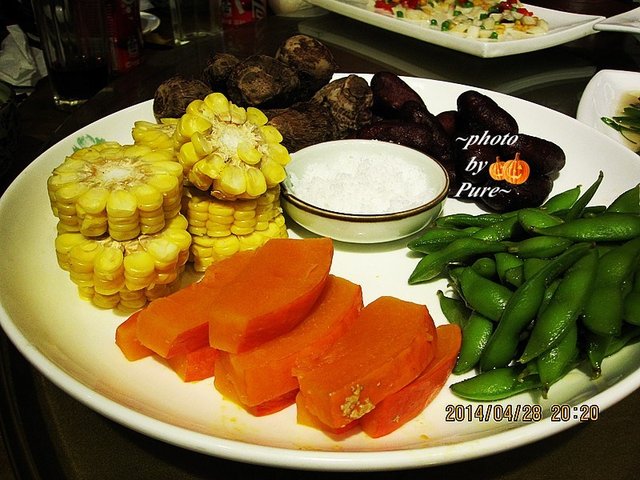 【五谷丰登】很宁波式样的点心。糟毛豆,玉米。胡萝卜,芋头,炸紫薯。我最惊讶的是里面的紫薯,因为炸过,虽然等待的时间久了一点。但是紫薯炸过的口感怎么可以那么新奇和那么棒。吃完紫薯后,糟毛豆作为点睛之笔,一下子又把人的味蕾吊了起来