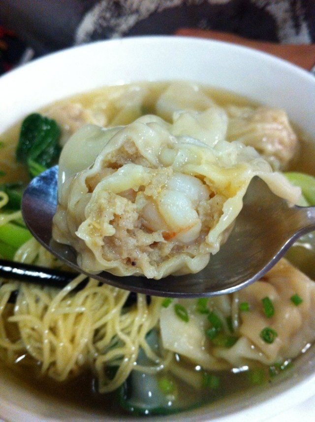 鲜虾云吞面是他家的招牌,很硬可,一碗下去一般女生都撑的要死。每一个云吞里面都有一整个虾,每一口都很满足。但是汤稍稍油了一些,喝了有点腻,如果汤里的油水少一点或者换成清汤也许更棒。