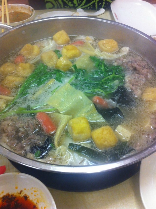 我吃的时候有团购,49元,特别实惠,足够俩个女孩子吃到撑。之后我们又点了一些团购套餐中没有的,但我们还很爱吃的,如虾滑、鸭血等。俩个人真的是撑到不行。