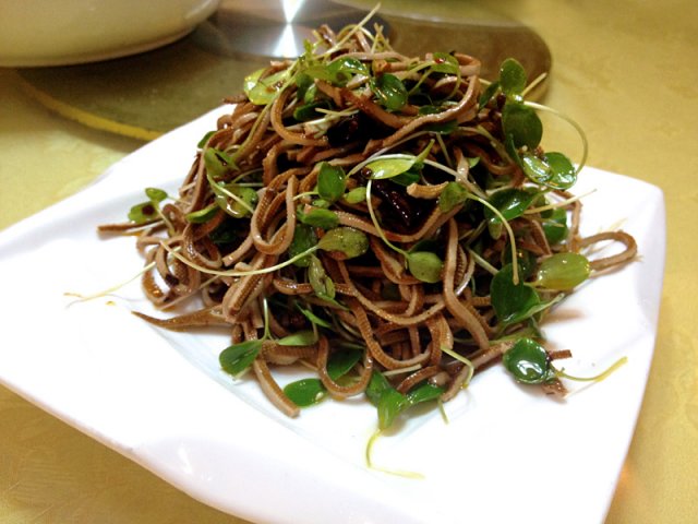【香椿苗拌黑豆腐丝】20元,香椿苗的味道比以往吃的口味都更重,豆腐丝是比较湿的那种,软软的蛮喜欢吃的,辣椒油也挺香的