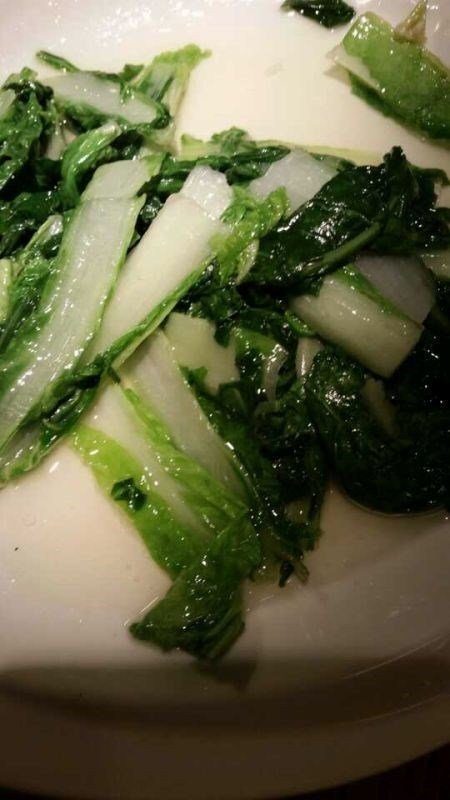 最后一份时令蔬菜大白菜秧子,家常做法,用点盐和极少量酱油调味,一点不咸菜根多嚼嚼能吃出来点甜味,青菜最受大家欢迎。