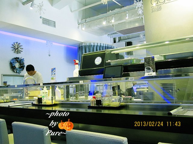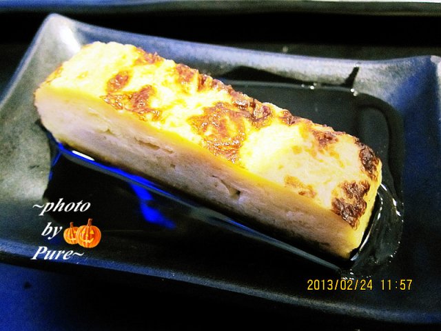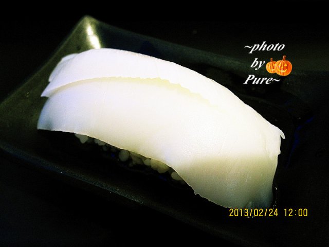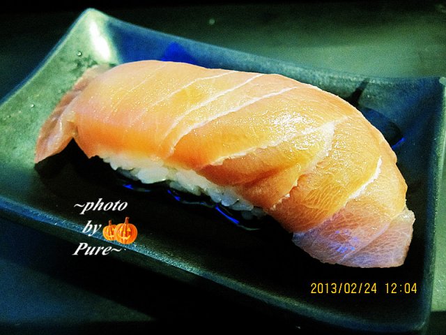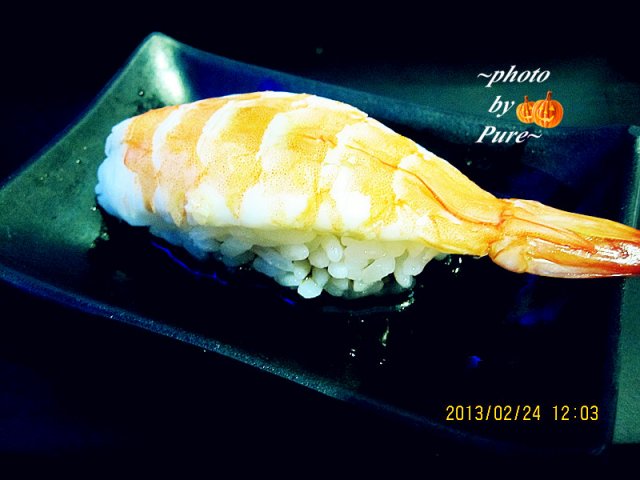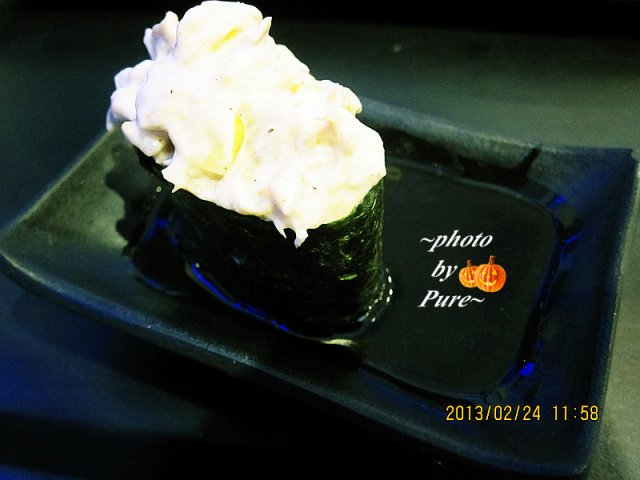 寿司有:炸葱鱿鱼寿司,三文鱼寿司,蛋卷,金枪鱼寿司,玉米寿司,虾寿司,还有撒有葱花的白色的什么鱼寿司(汗)。寿司米好棒,沾了酱油一口一个。而且不易散。上面的刺身相当新鲜。每一个都是完美无瑕的艺术品。旁边有个电视屏幕在播放寿司的制作过程。寿司师傅们制作寿司也是透明开放式的。