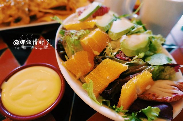 于是送了一份非常漂亮量也不小的沙拉,我问服务员这道是什么沙拉,答曰没名字,就是新菜。
