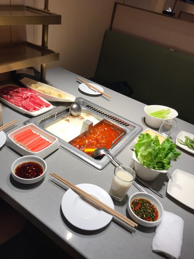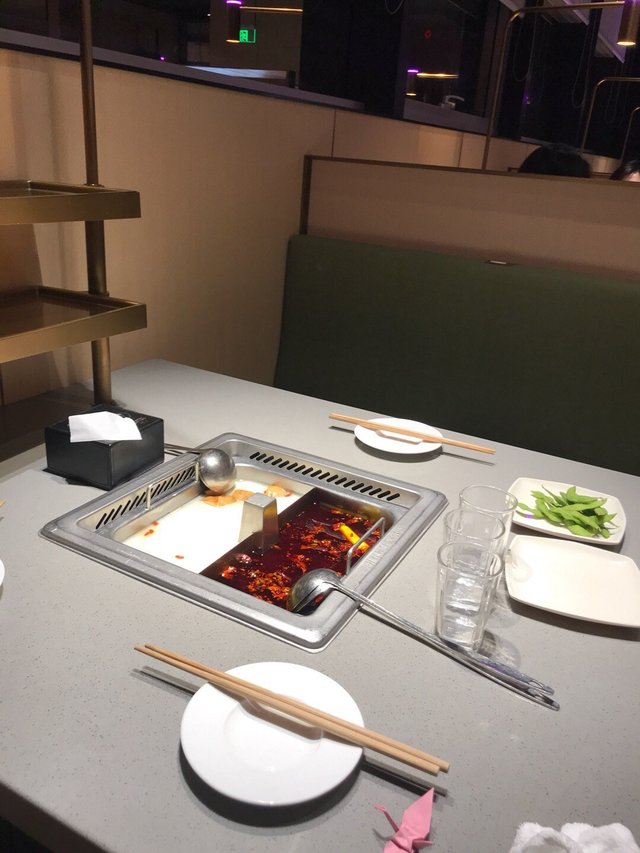 在等朋友的時候先點了湯底,是三鮮跟牛油麻辣