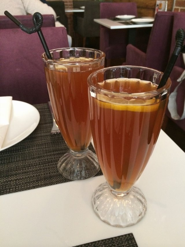 【冻柠檬茶】团购上标明的原价是25元一杯……从没喝过甜度如此爆表的饮料,以至于我连向服务员要了两杯冰块外加一杯白水稀释才变得正常……看到了吧台制作饮料的过程,就是大白桶的柠檬茶浓缩汁外加水。